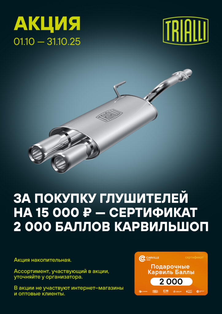 За покупку глушителей на 15 000р. – сертификат 2000 баллов Карвильшоп