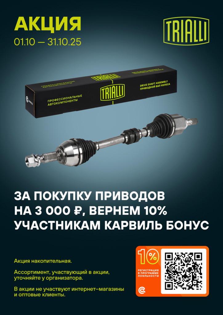В октябре бонусы за покупку продукции STARTVOLT , LUZAR, AIRLINE, TRIALLI, CARVILLE RACING .