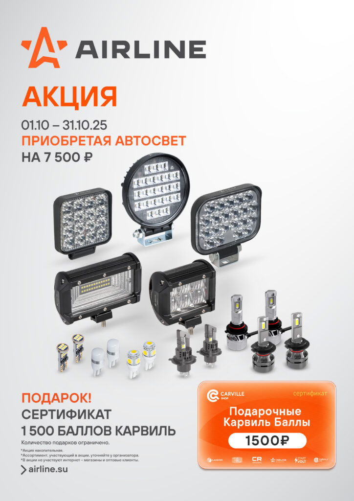 Приобретая автосвет на 7 500р – сертификат 1500 баллов Карвильшоп