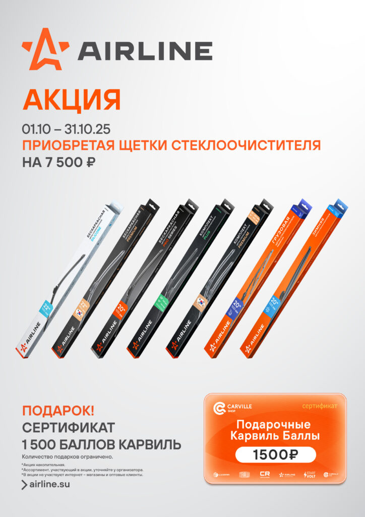Приобретая щетки стеклоочистителя на 7 500р. – сертификат 1500 баллов Карвильшоп