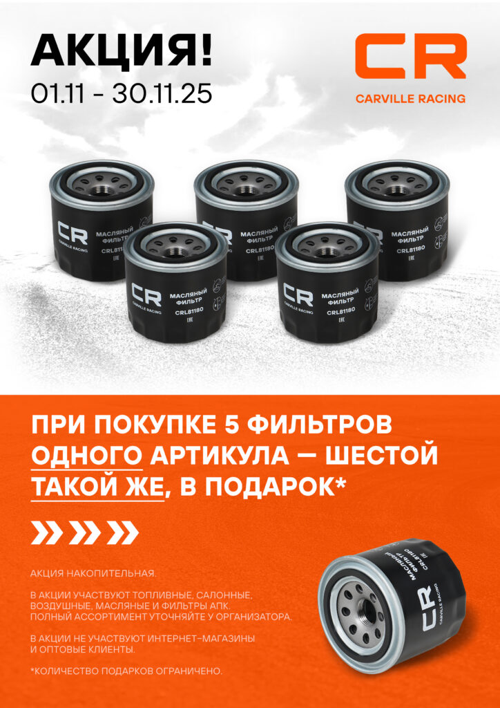Акция «Федеральная акция для клиентов дистрибьютора. ФИЛЬТРЫ.5+1 CARVILLE RACING. Ноябрь 2025 г.»