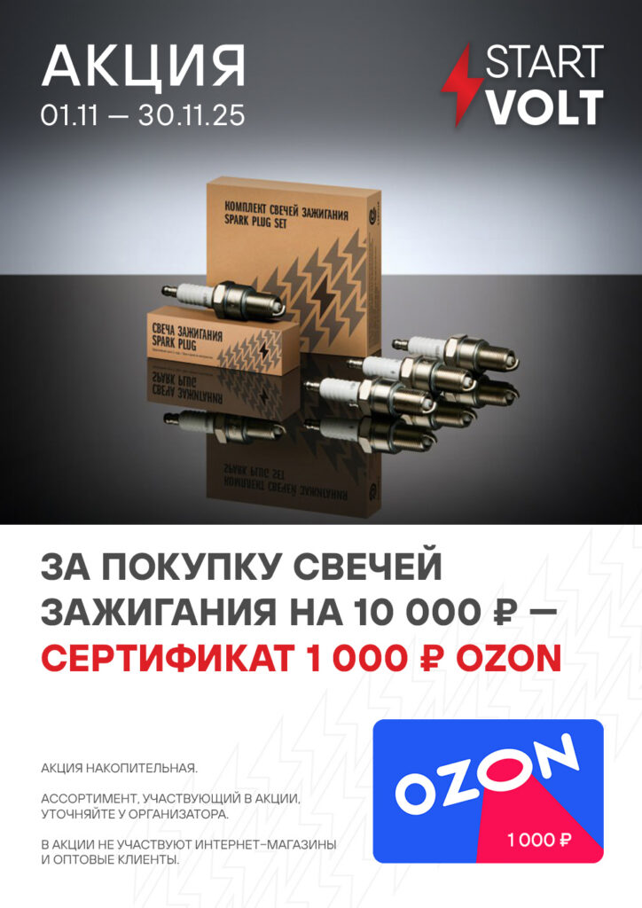 За покупку свечей зажигания на 10 000руб. – сертификат 1 000 руб. OZON
