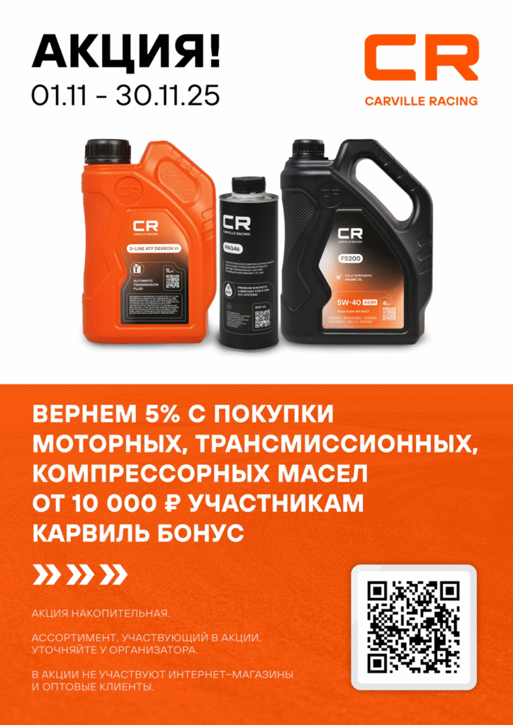 Акция «Федеральная акция для клиентов дистрибьютора. Масло 3+3 (канистры) CARVILLE RACING. Ноябрь 2025 г.»